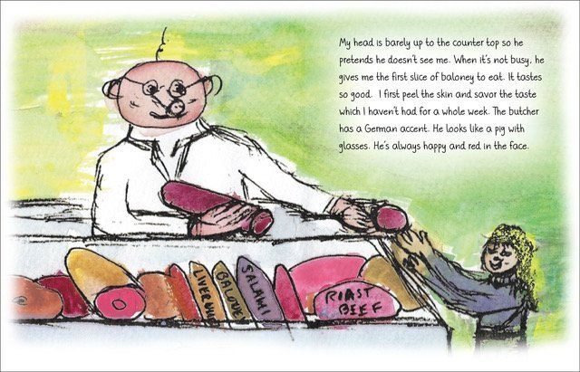 With her angel by her side, the child goes through her Saturday ritual that includes the butcher's offering her a slice of baloney and the baker's giving her the ends of the bread. With people blessing themselves all over Broadway, she returns home to her lyrical mother and the family feasting on baloney sandwiches.