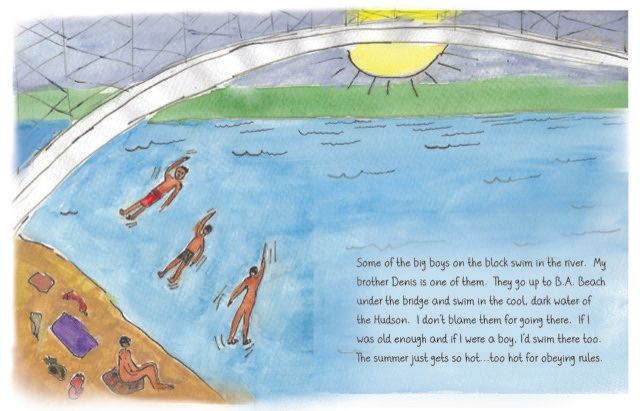 The child imitates her mother, "If ever ye fell into that dirty, filthy river, ye'd be crippled for life". Meanwhile, we discover that her brother swims in the Hudson every day and the child feels she would swim there too, if she were old enough and if she were a boy. Both children justify disobeying the mother's warnings to stay away from the river- "it just gets too hot to obey."